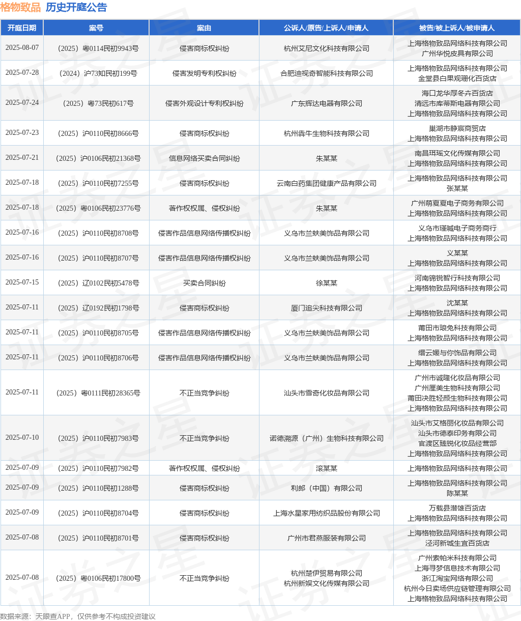 本站消息,根据天眼查APP显示,近日公布了一则上海格物致品网络科技有限公司作为被告/被上诉人的开庭公告,详细内容如下:
